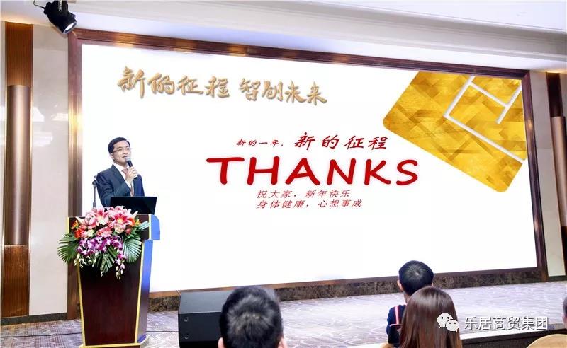 廣東樂居商貿集團董事總經理馮敏達先生致辭。他總結說,樂居商貿集團2018年是充實、從容、堅定的一年。過去一年,樂居商貿集團整合了鋼貿、地產、物業經營、廣佛汽車城、南海食出的資源,為持續發展打下基礎,提高集團的抗風險能力和市場認可度。