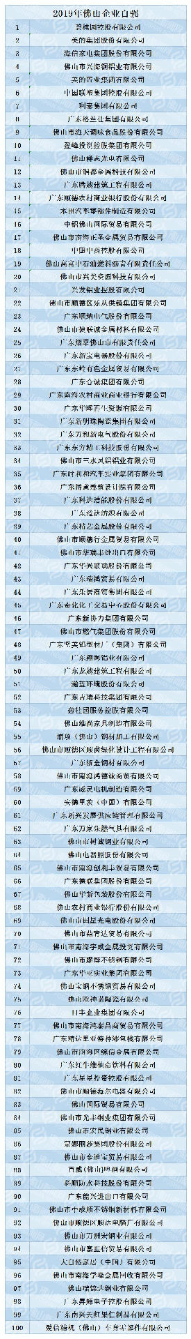 【以下是佛山企業100強榜單】