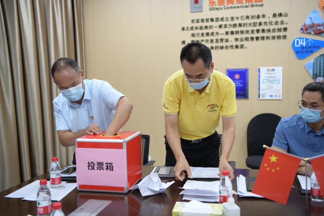 會議在莊嚴的國歌聲中拉開序幕。會上,里水鎮黨建工作辦主任黃潔清代表里水鎮黨委宣讀了同意成立中共廣東樂居商貿集團有限公司支部委員會的批復。大會嚴格按照選舉規定程序,選舉產生了黨支部書記吳偉、支部委員梁梓豪和支部委員李治杰組成的第一屆集團黨支部委員會領導班子。