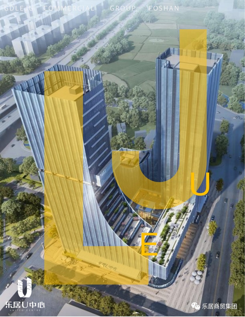 樂居U中心的建筑立面形如“樂居LeJu”的L、J相交,項目側面角度猶如L+J組成的字母U,鳥瞰建筑平面線條則構成樂居商貿集團的標準LOGO形狀,意為樂居堅持了三十年品牌理念和對城市發展的愿景。