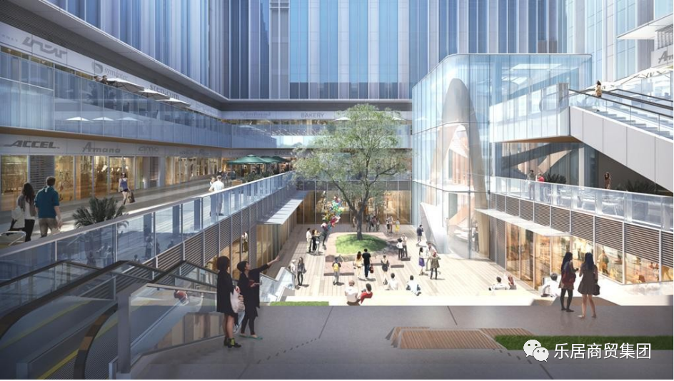 項目建成后,樂居U中心規劃的綜合業態共生共榮體系:1F-5F商業裙樓環繞中心庭院核心景觀 動線高效聯系各功能,讓商業價值最大化;同時以綠色健康、科技、精致生活為主題打造創新商業區。